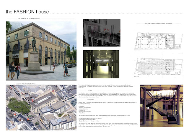 The Fashion House is what I assigned the Habitat Building to become, having a central location in the center this was a perfect spot fort this project not only for its location but the unusal shape and large interior. The fashion houseis a space where fashion meets design, education , work experience and luxrious experiences for the public but it alsooffers memberships with exclusive offers.