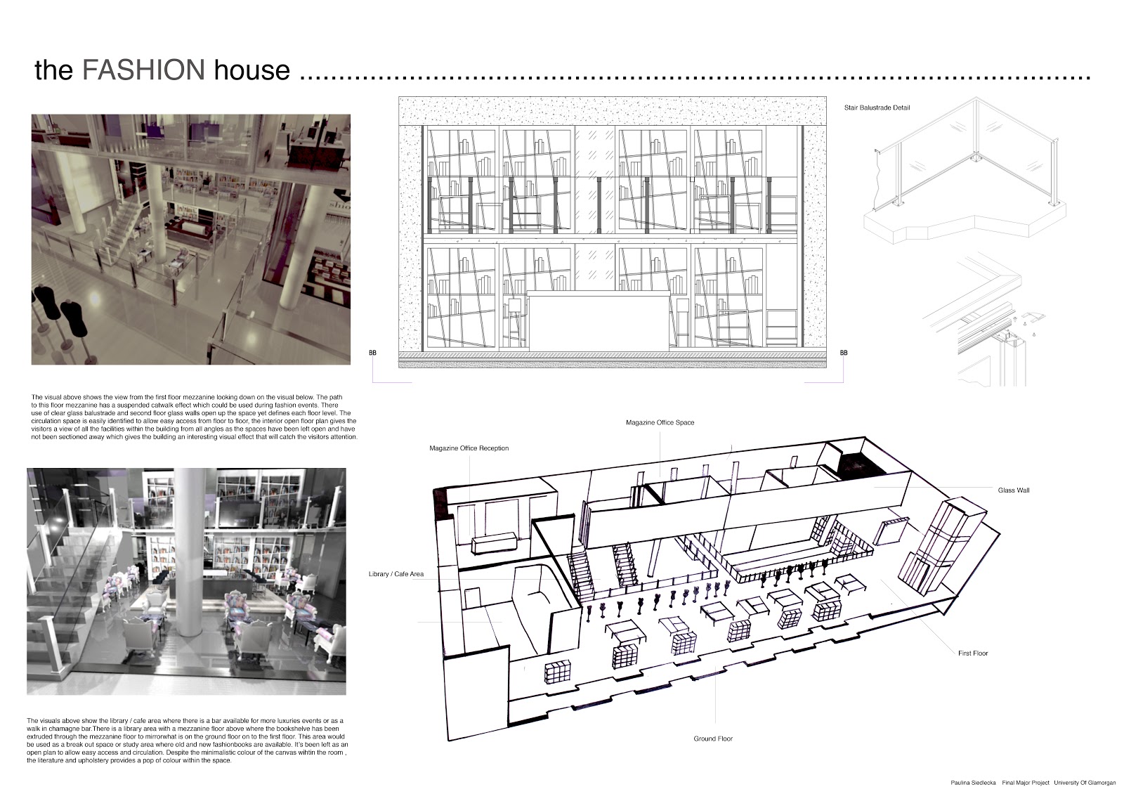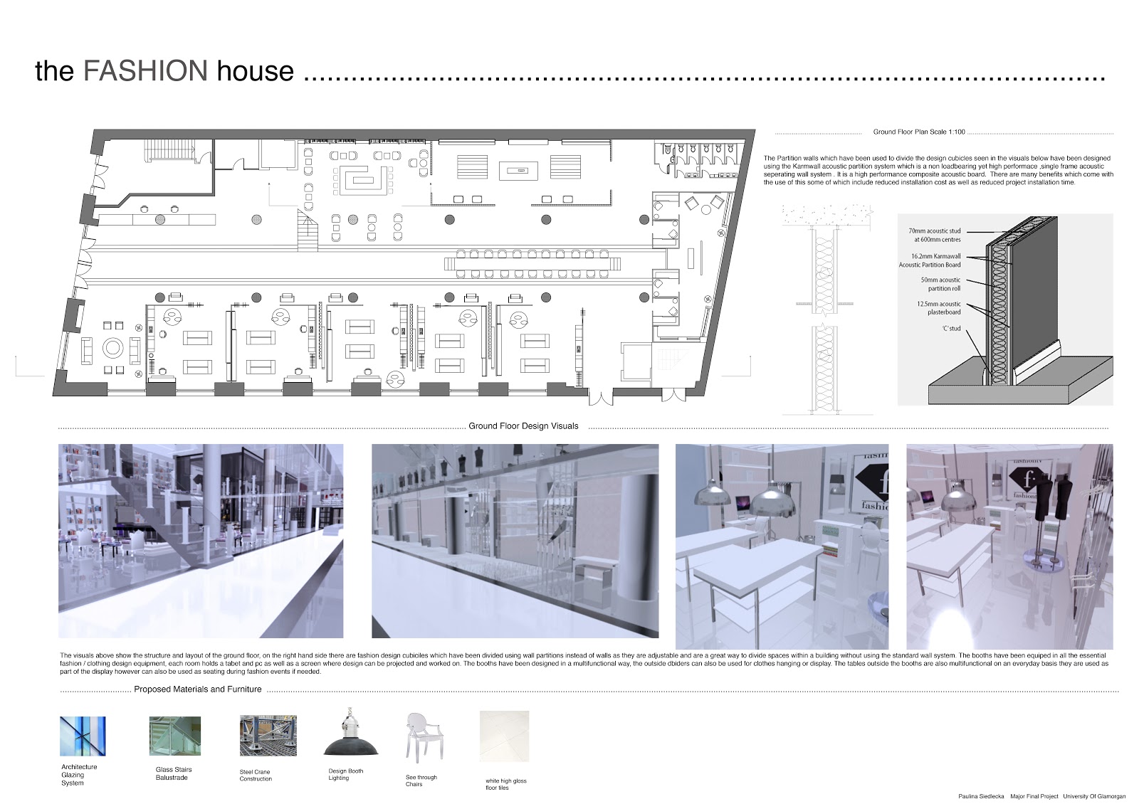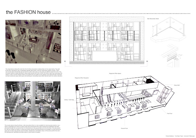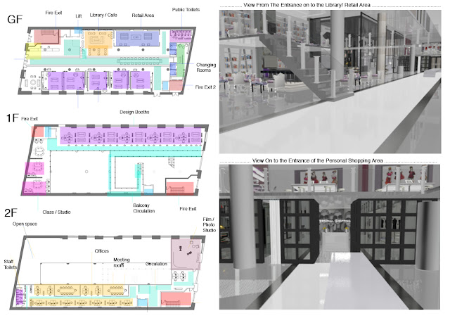 Ground Floor: The busiest part of the building as there is a lot going on however the open plan keeps the circulation of te building easy flowing.- Reception- Fashion Design Booths