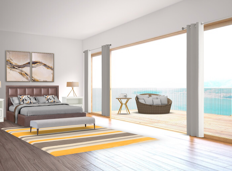 Grey and Yellow tones have been one of my favourite combinations at the moment , the grey gives the space a lovely neutral and earthy toned vibe whilst the yellow adds that little bit of pop of colour without being over dramatic. Today's post is based around how one space can be used for different purposes. I love this beach house setting whether you'd prefer it as a lounge or a bedroom with a view I have put together two design ideas to give you  a little bit of inspiration on how the two could easily transform this space to beautiful setting, if only we all had a beach house like this ey?! ;)