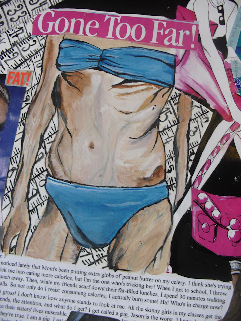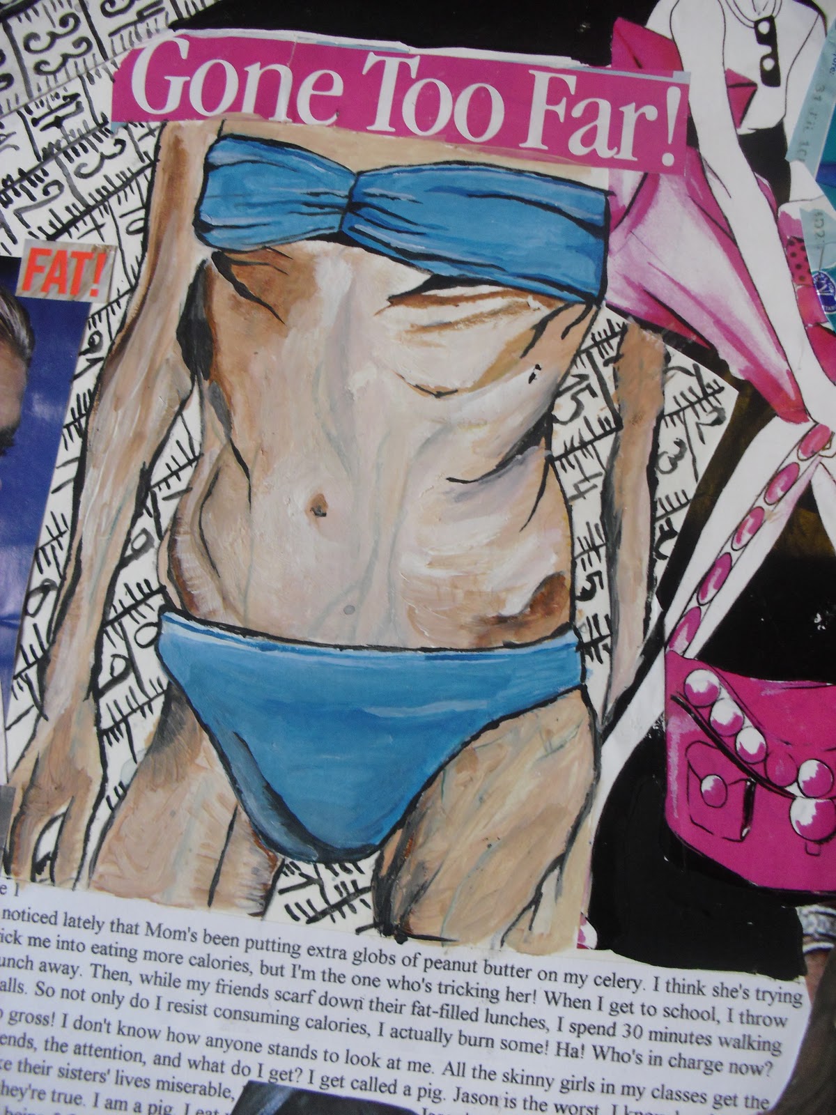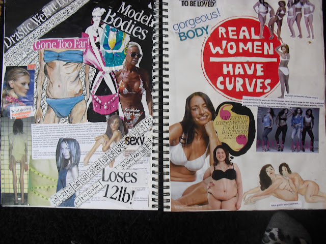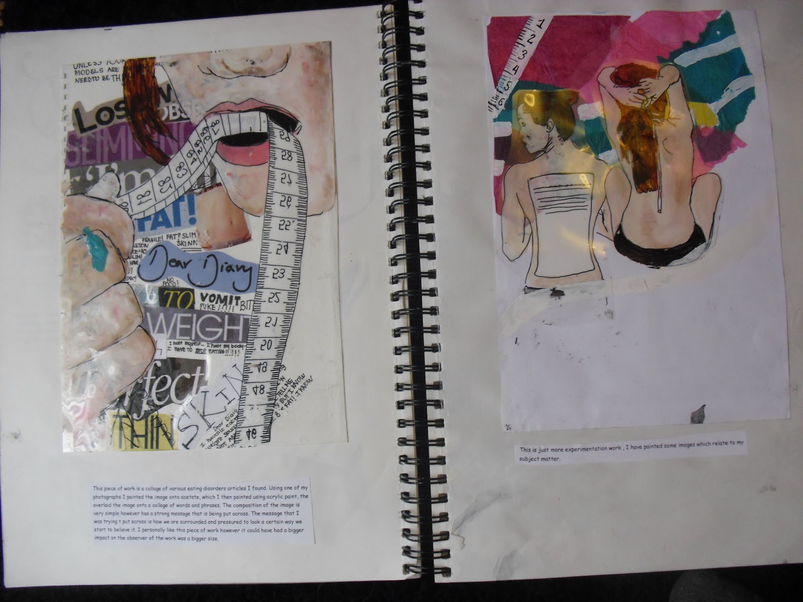 This Project was based on the theme of shapes and forms, a shape consists of several forms. Having looked at various shapes and forms I personally decided to focus on human shapes and forms to narrow the subject. I decided to look deeper into the human body shapes furthermore I started looking into the matter of eating disorders and looking at human forms at the most extreme. The celebration of new form of women in history of art versus the media celebration of zero size models and how size 0 models are rarely seen in artwork is is the bigger woman that are seen. I did observational life drawings as well as sketches from secondary sources. I looked at various photographs, books and magazines in order to complete my research for this project. Artist used for inspiration were; Tony Cragg and Jenny Saville.